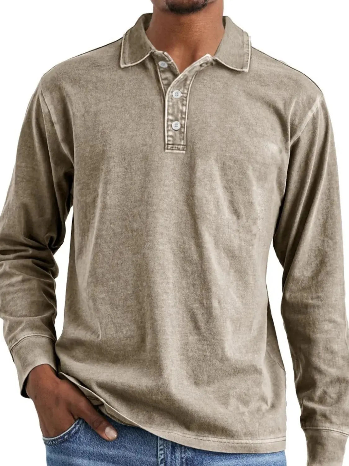 Men's Plus Size Collared Neck Long Sleeve Polo Shirt