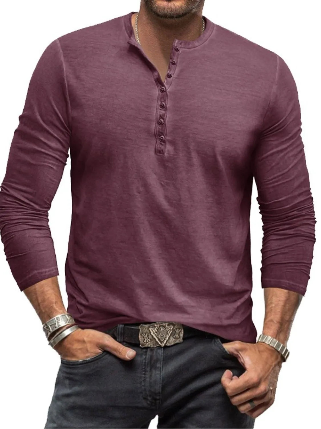 Men's Plus Size Button Detail Blue Henley Long Sleeve Shirt