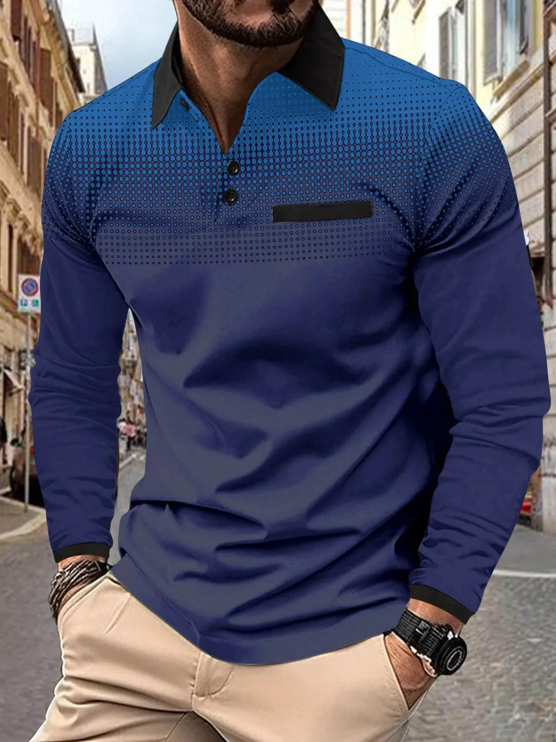 Men's Plus Size Collared Long Sleeve Polo Shirt Blue