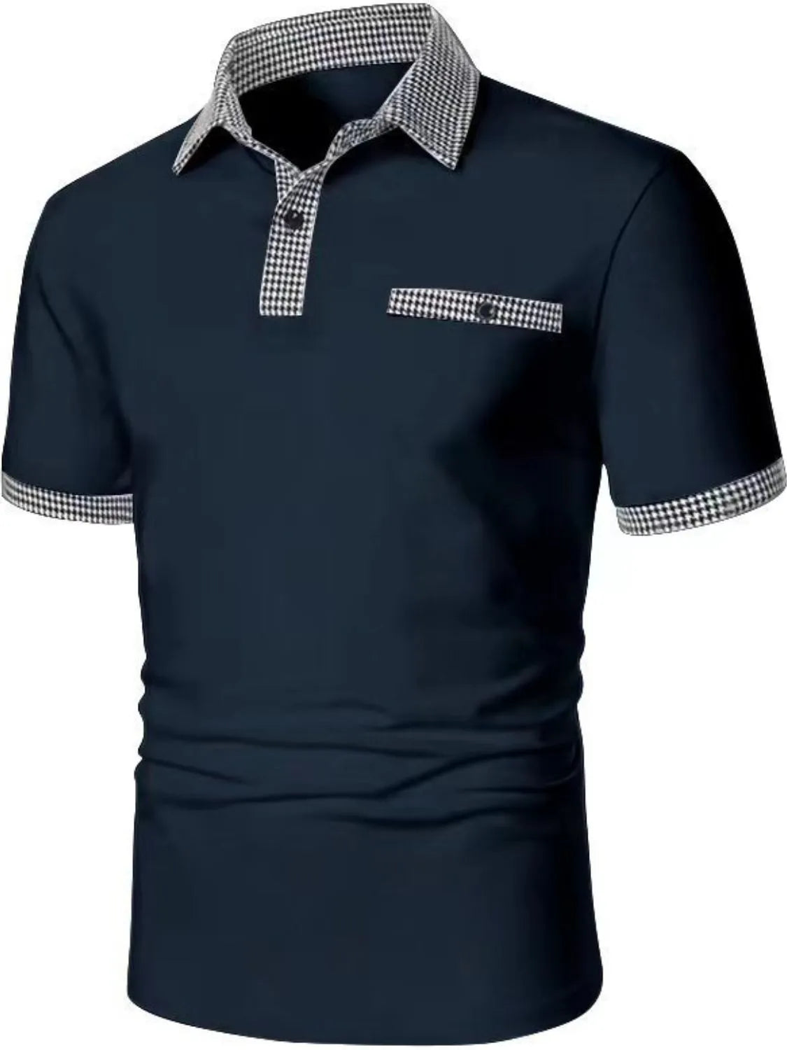 Men's Plus Size Checkered Trim Polo Shirt With Short Sleeve