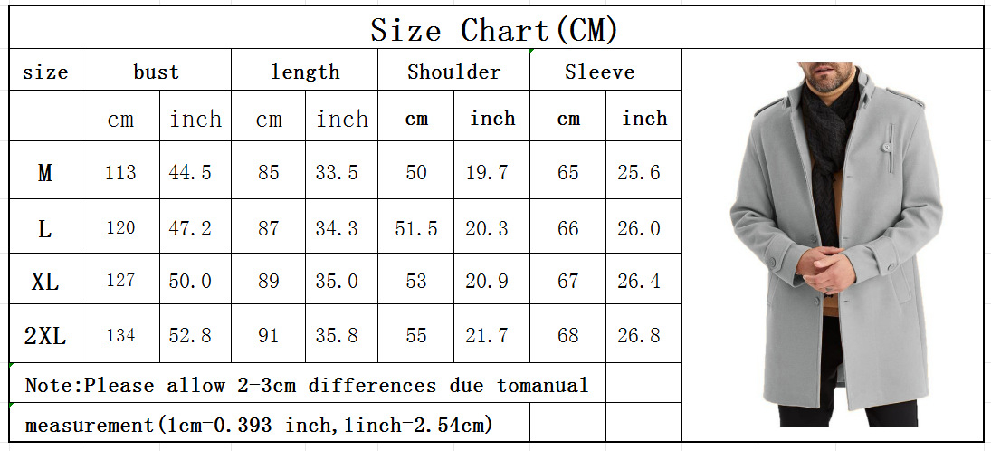 Men's Fashion Single-Breasted Mid-Length Epaulette Jacket