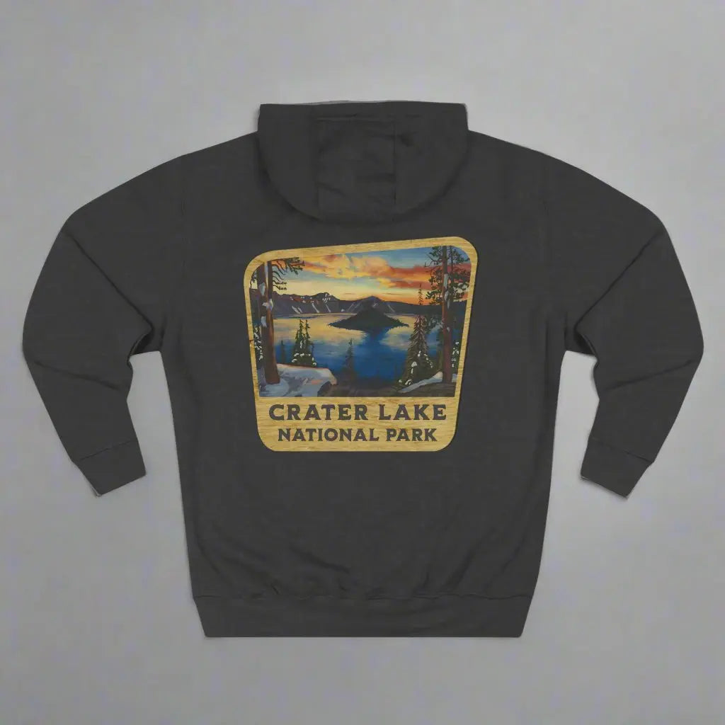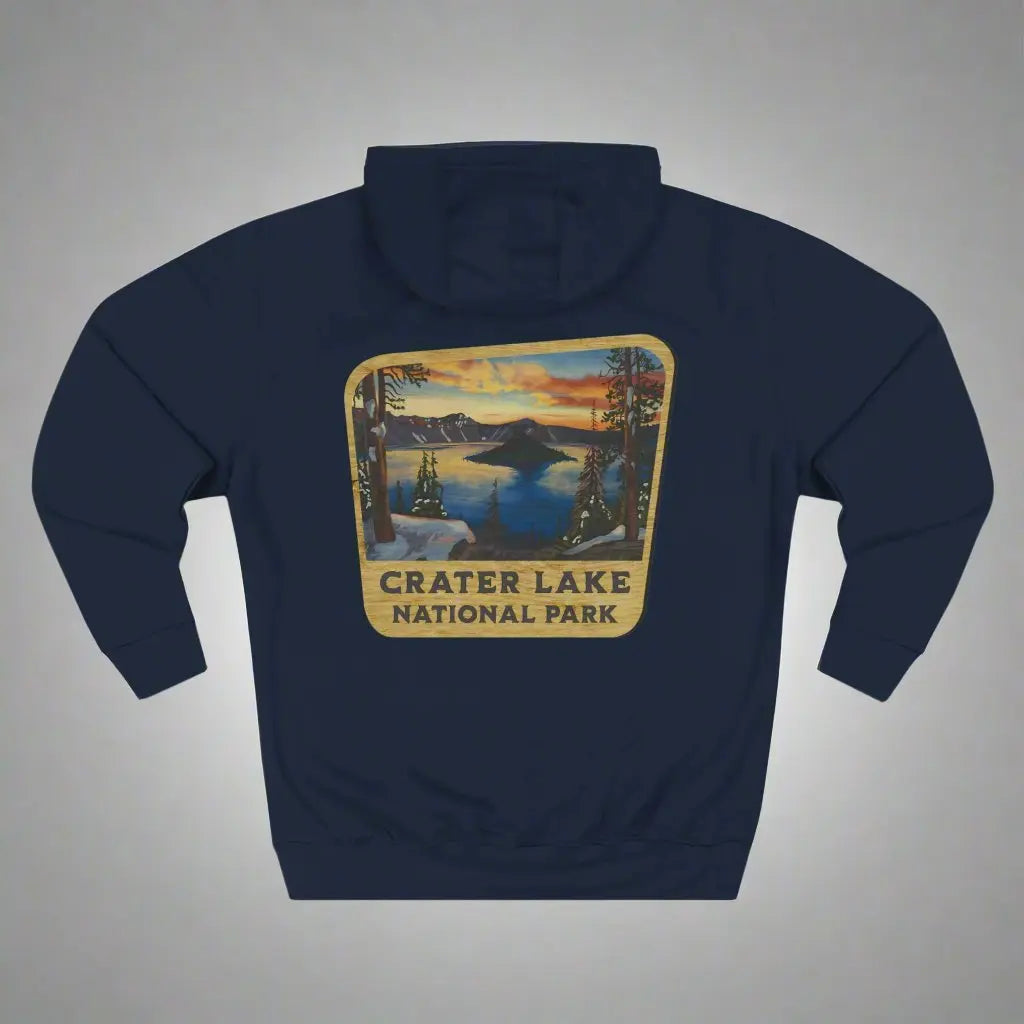 Crater Lake National Park Unisex Fit Fleece Hoodie Scenic View Graphic Wooden Mountain Sign