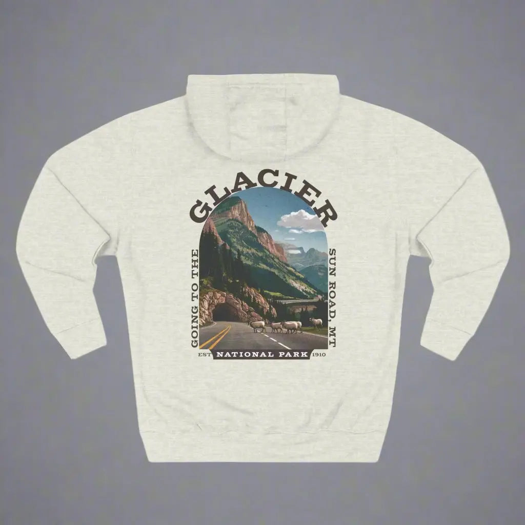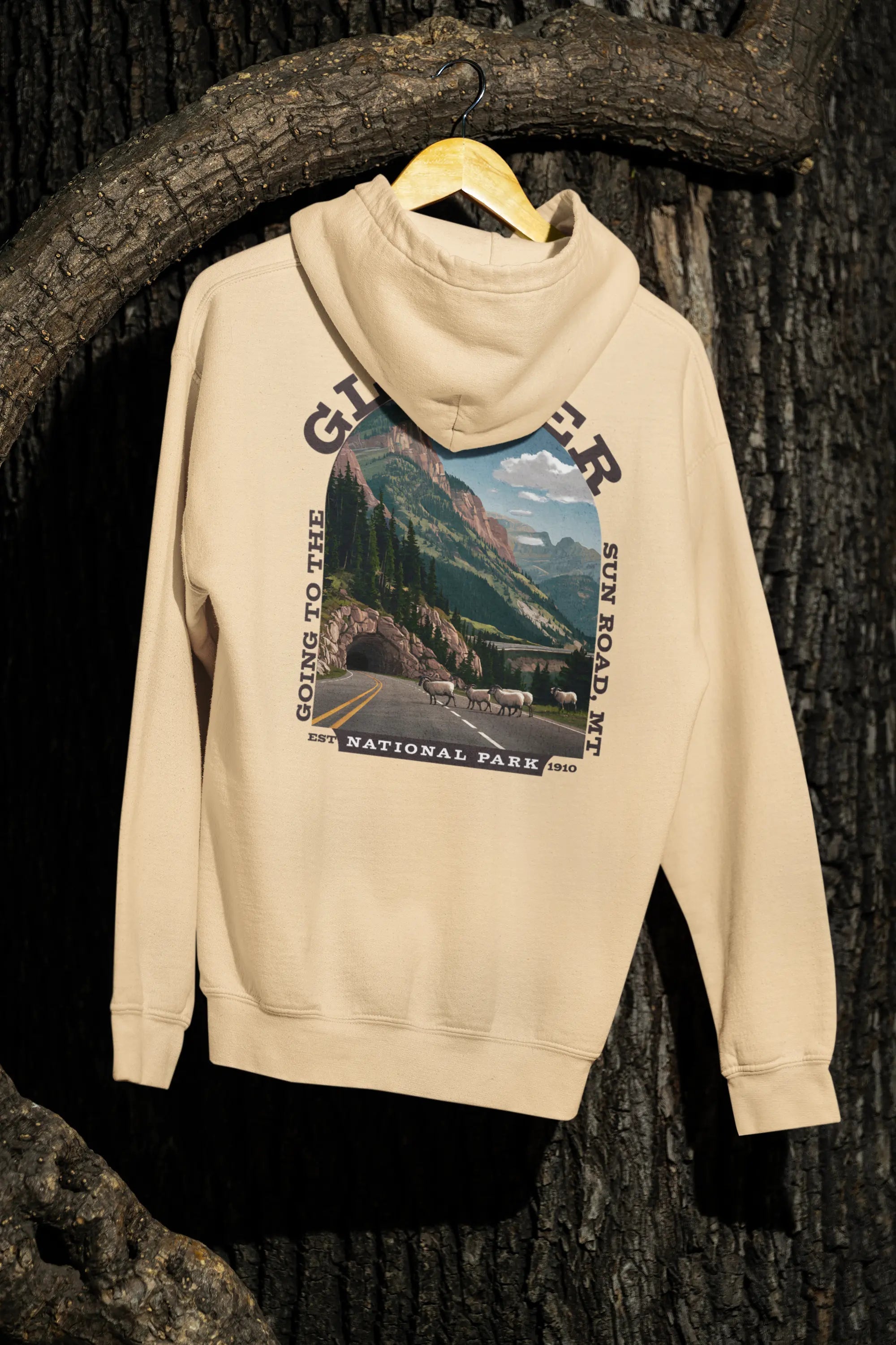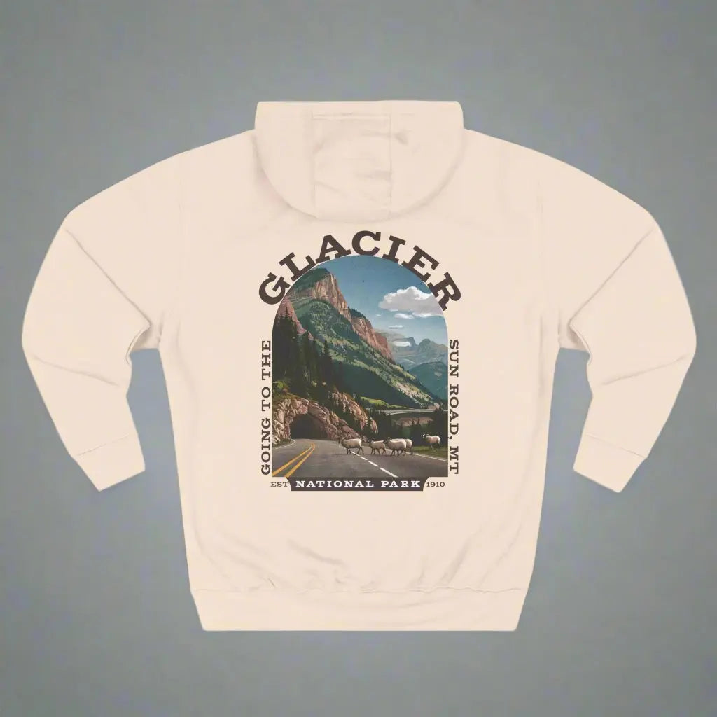 Glacier National Park Unisex Fit Fleece Hoodie Scenic Going to The Sun Road Big Horned Sheep