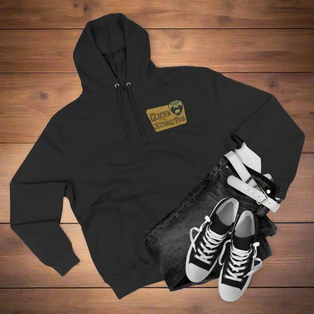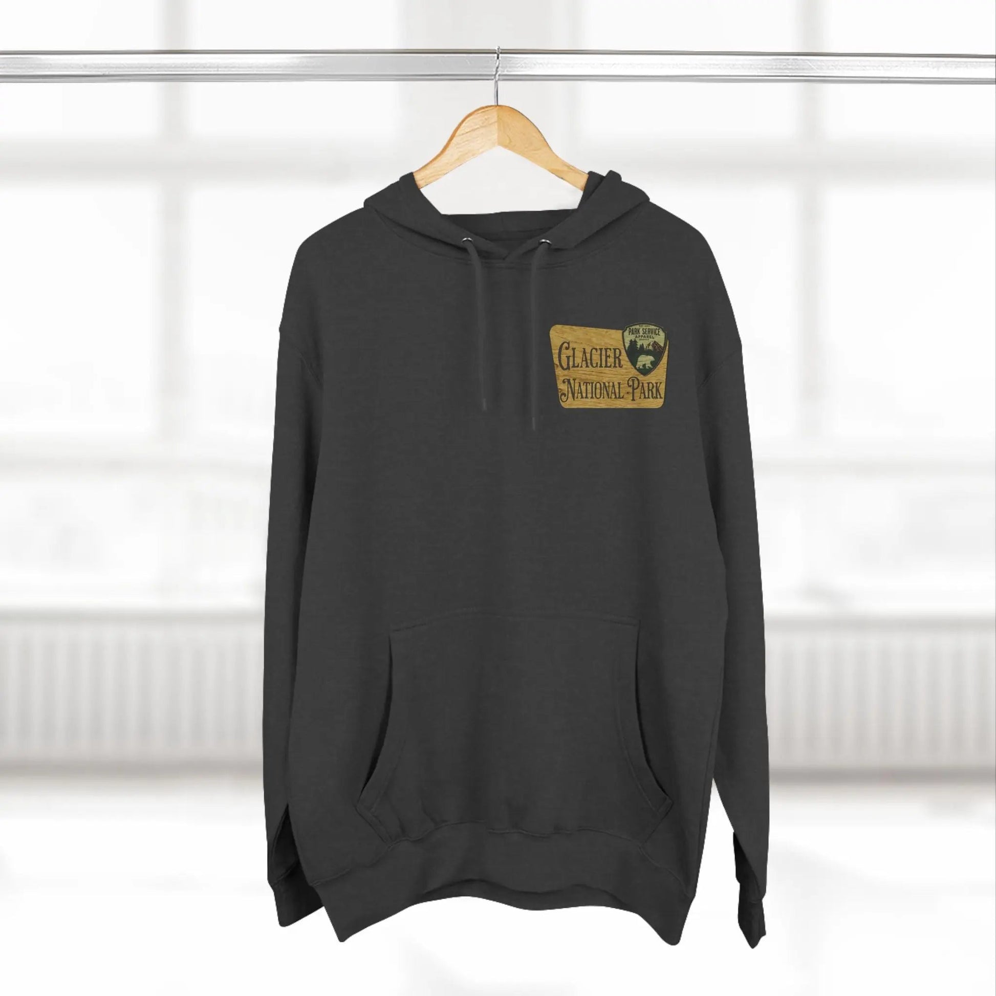 Glacier National Park Unisex Fit Fleece Hoodie Scenic Mountain Goat View Graphic Wooden Sign