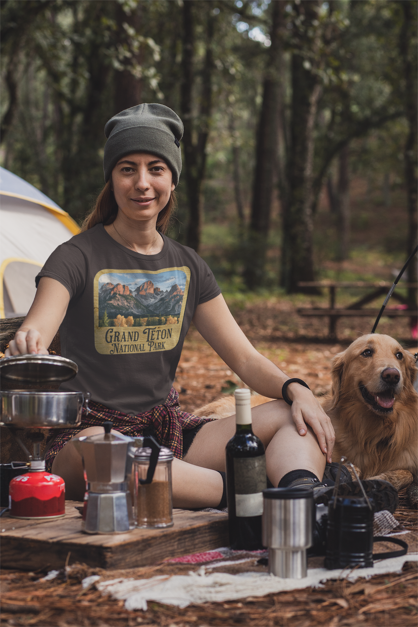 Grand Teton National Park Unisex Fit Soft T-Shirt Wood Sign