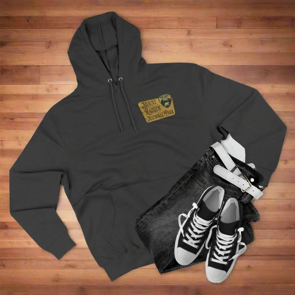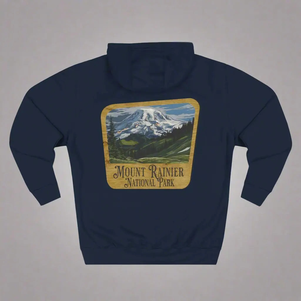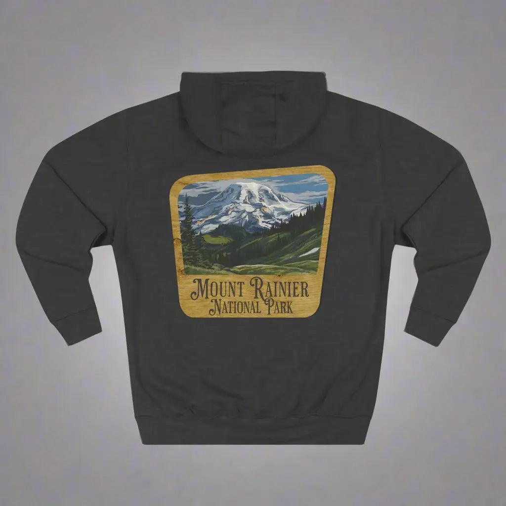 Mount Rainier National Park is one of the most iconic landmarks in the United States, attracting millions of visitors every year. Our fleece hoodie pays homage to this scenic wonder, featuring a detailed wooden mountain sign that represents the park's natural splendor. Not only does this hoodie serve as a great memento for your travels, but it also functions as a versatile piece of clothing suitable for any occasion. Because it’s designed with high-quality fleece, you'll stay warm whether you're on a mountain trail or heading out for a night in the city.