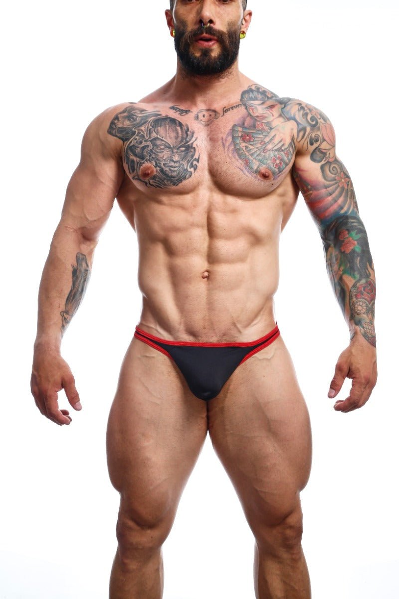 Experience unmatched tactile delight with the MOB Sleek Jock Jogger Set. Crafted for the discerning gentleman who seeks to merge style with sensuality, this set combines the bold aesthetics of a jock and the athletic flair of knee-length joggers. Intricately designed with side perforations, it boasts both ventilation and a touch of audacity, ensuring you remain both cool and eye-catching. The use of mesh as the chosen fabric provides a balance between allure and comfort, making it an irresistible choice for intimate occasions and relaxed lounging alike. Rooted in ethical values, this set emanates from the hardworking hands of Colombian female household heads, seamlessly integrating their tales of empowerment and dedication. With renewable energy driving its creation, each stitch reaffirms our devotion to sustainability. Conceived and infused with Canadian design sensibilities, this ensemble offers a unique blend of elegance and edge. Whether it's the timeless allure of black or the fierce dynamism of redblack, available in sizes SM and LXL, the MOB Sleek Jock Jogger Set is bound to redefine your innerwear game.