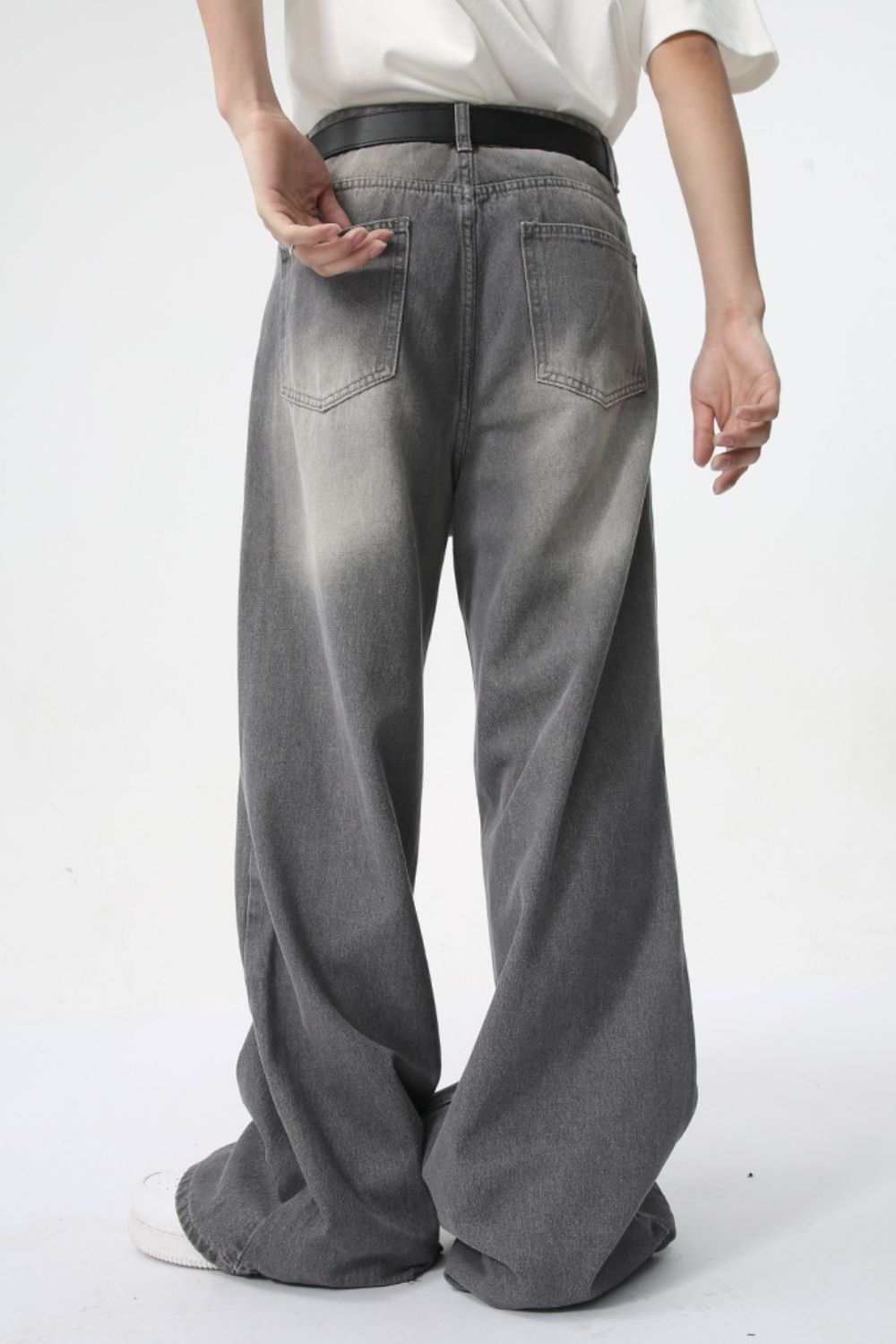 MENLL Premium Distressed Wide Leg Gray Jeans With Pockets